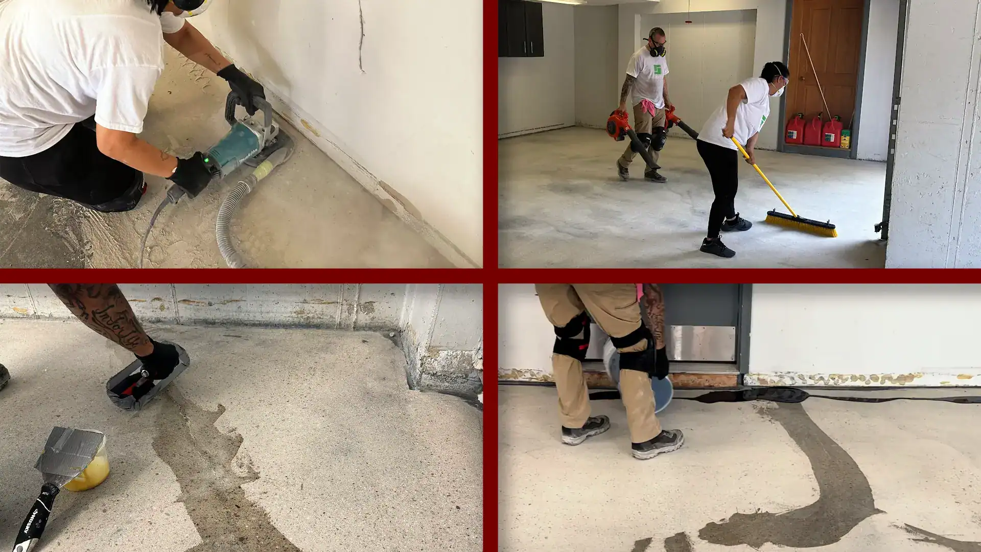 Because concrete moves, cracks should never be filled with rigid materials. Before installing an epoxy floor coating, cracks must be repaired using a flexible elastomeric filler. This allows the repair to move with the slab instead of resisting it, helping mitigate inevitable shifting that can lead to visible crack lines or coating failure later on.