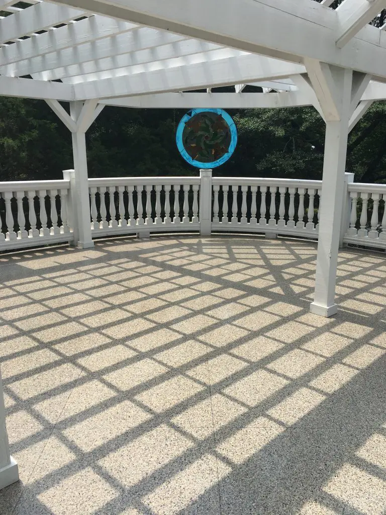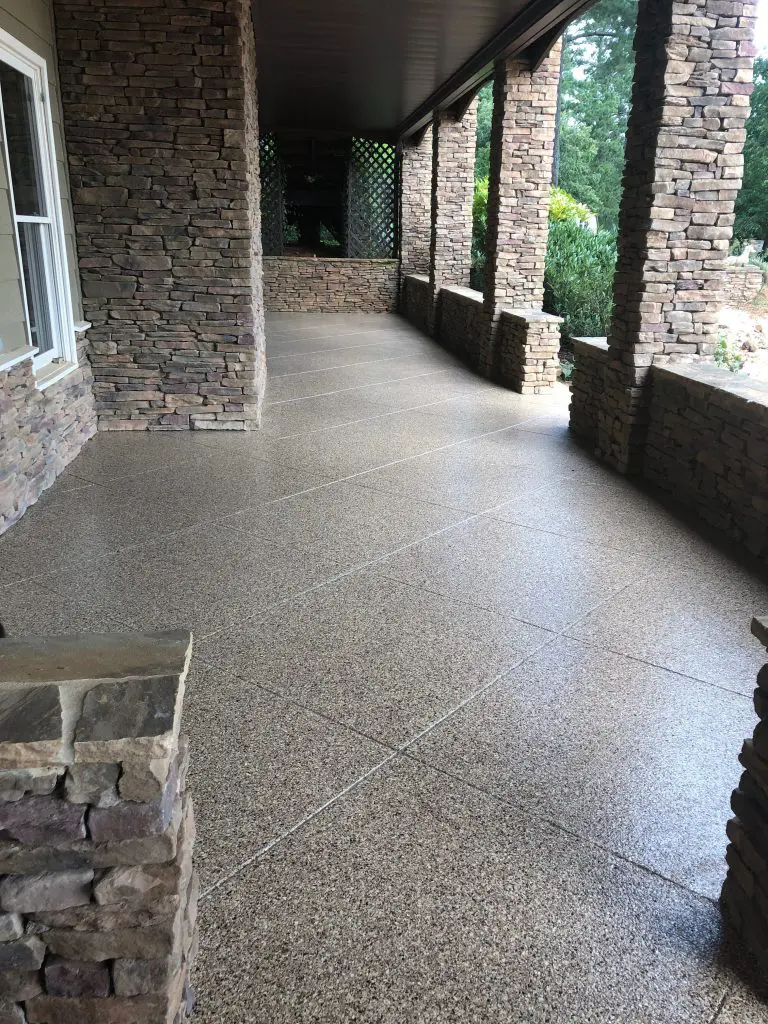 We understand that patio coating can add additional slickness to the floor when wet. we take this into careful consideration and use additional anti-skid aggregate to minimize the slick factor.