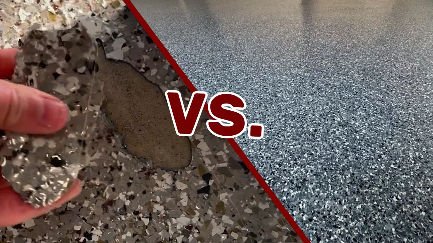 Plasticizer migration, permanent tire staining, happens when tire compounds leach into coatings as the slab heats up. Many 1-day systems, thin epoxies, and lower-grade polyaspartics cannot handle it, so competitors quietly exclude tire staining. Our multi-layer garage floor coating systems resist plasticizer migration using industrial-grade materials, a full-broadcast flake layer, and two polyaspartic clear coats engineered for demanding garage conditions.